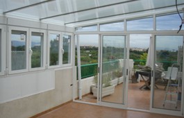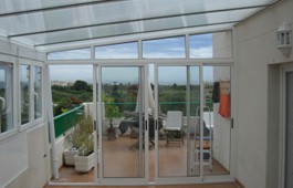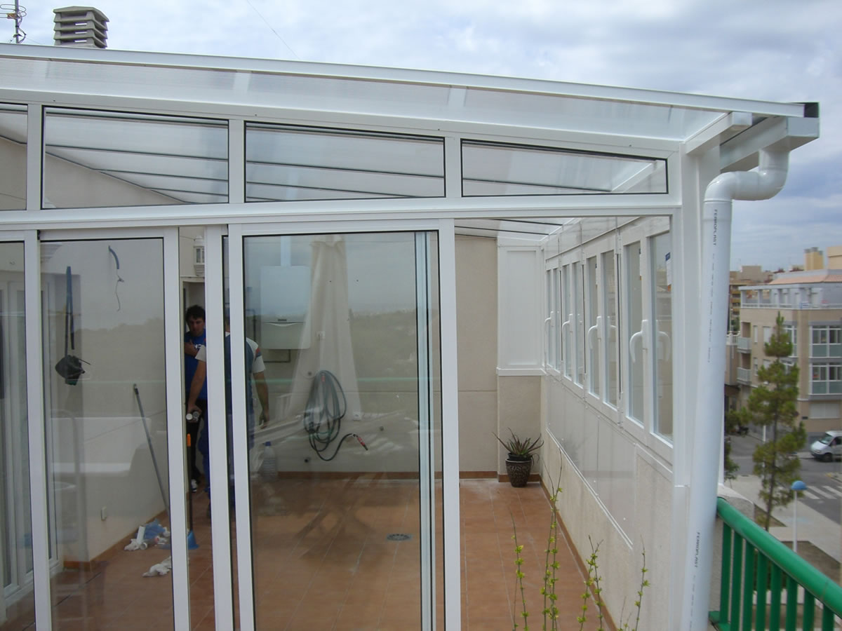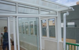 Techo policarbonato y ventanas oscilobatientes.